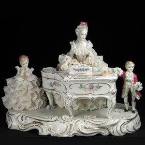 此款瓷偶纯手工制作,其瓷花朵,瓷裙摆的粘制工艺和着色非常繁琐复杂,其价值远大于单朵纯色瓷花瓷偶,是一款不可多得的收藏珍品。瓷偶附有原产的装饰框,整体品相较好。德国萨克森州瓷器工厂德累斯顿有限公司成立于1872年,位于德国德累斯顿市,主要生产高档家用瓷器以及工艺品瓷器。其名气与梅森瓷器更是被誉为欧洲高档瓷器的代表。除了用料讲究,身份高贵外,工匠们纯手工的世袭工艺也极为关键。它就像独家配方,秘而不宣。特别是一些制作难度比较大的瓷塑和瓷偶,它繁复的工序如同天方夜谭,需要一个工匠连续工作数日甚至数周才能完成。手工最大的特色在于它的不可复制性,可以说,每一件产品都是独一无二的,倾注了人类特殊的情感,具有较高的收藏价值。
