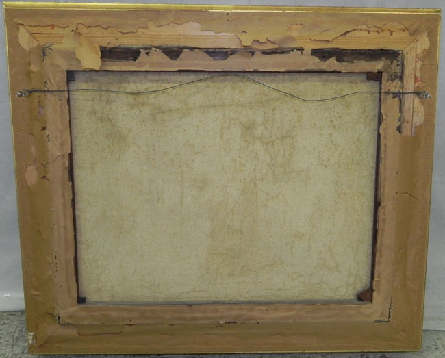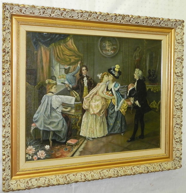 Oil on canvas parlor scene.
