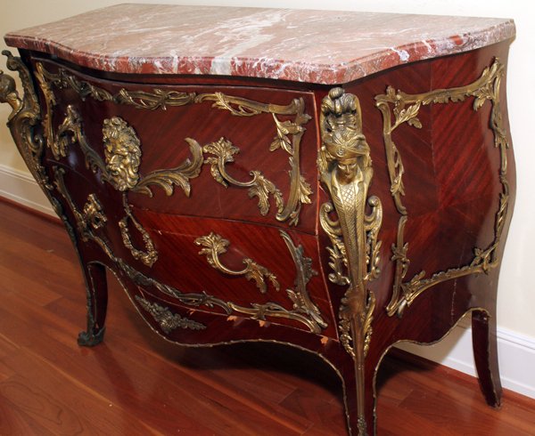 LOUIS XV STYLE COMMODES, H 35", W 47", D 20"